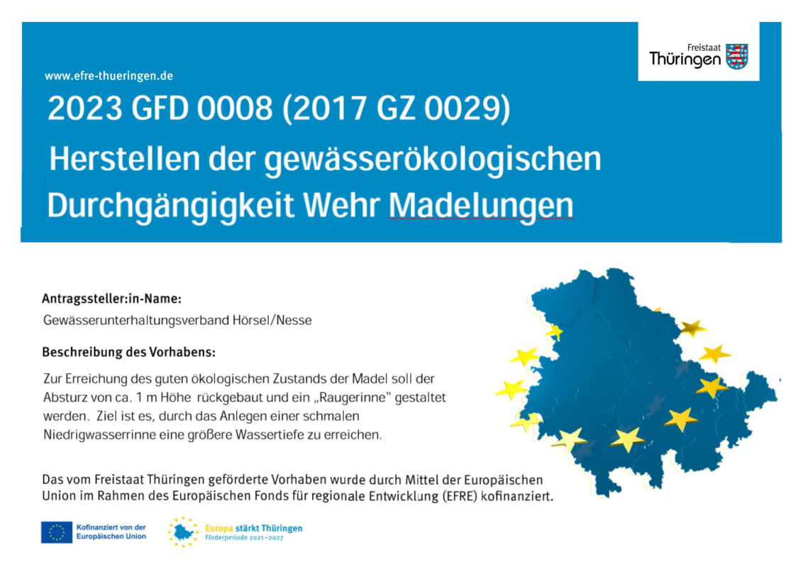 Fördermaßnahmen | 11. Juni 2024 Fördermaßnahme - 2023 GFD 0008 Zurück Ausschreibungen offene Stellen Unsere Anschrift Gewässerunterhaltungsverband Hörsel/Nesse Ortsstraße 10 99887 Georgenthal OT Schönau v. d. W. 036253 260790 info@guv-hoersel-nesse.de